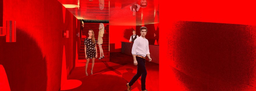 The design of Mezzo House incorporates existing elements of a performance space such as the red carpet and mirrors which are used throughout the building in unexpected ways to enhance the theatrical experience.